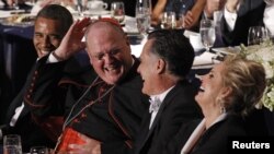 “Bu, bizim xalq kimi haqqımızda çox şey deyir ki, ixtilaflı seçki mövsümünün ortasında rəqib namizədlər bir araya gəliblər. Çox layiqli bir amal uğrunda. Mən xüsusən qubernator Romniyə mənimlə buraya birlikdə gəldiyi üçün təşəkkür edirəm, çünki mən ona ailə adamı və sevən ata kimi böyük ehtiram bəsləyirəm. Və həmin iki titul istənilən siyasi tituldan üstündür…Bizim baxışlarımız fərqli ola bilər, amma mən əminəm ki, biz növbəti dörd ildə bu gün hamının şahidi olduğu ləyaqət hissi ilə yüksək amallar uğrunda bir araya gəlmək ümidini paylaşırıq,” deyə prezident Obama Amerikada ənənə halını almış Al Smith adına nahar ziyafətində bildirdi. Eyni stol arxasında nahar edən prezidentliyə namizədlər Katolik kilsəsinin təşkil etdiyi xeyriyyə törənində bir-birinin şəninə təriflər yağdırdılar.