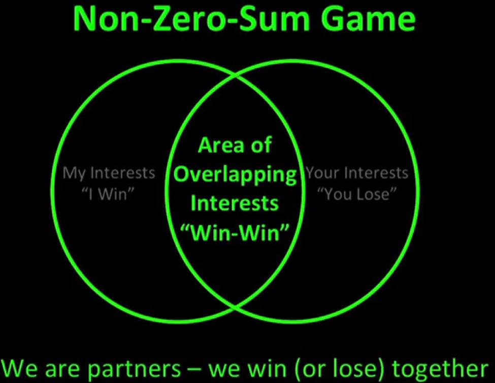Bir tərəfin uğurunu başqasının məğlubiyyəti kimi səciyyələndirən situasiyanın formulu politologiyada sıfır-cəm nəzəriyyəsi adlanır. Yəni əgər iştirakçıların qazanclarının cəmindən iştirakçıların məğlubiyyəti çıxılsa nəticə sıfıra bərabər olacaq. Əlbəttə, bu nəzəriyyə bir az qəliz səslənsə də əslində bu riyazi formul hər kəsə ən erkən yaşlarından tanışdır: Məsələn, təsəvvürünzə tort bölüşdürülməsini götürün. Birinə düşən artıq pay başqasının payının avtomatik azalması deməkdir.