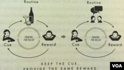 İxtisasca biznes təhlilçisi olan müəllif vərdişi üç mərhələli çevrə kimi izah edir. Birinci mərhələ işarə, ikincisi mütəmadilik, üçüncüsü isə mükafatdır. Əgər siqaret çəkən Marlboro qutusunu görsə onda beyin nikotin gözləməyə başlayır. Siqaretin görüntüsü bir işarədir ki, beyin nikotinə təlabat duymağa başlasın. Sonra əl siqaret qutusuna gedir və az qala qeyri-ixtiyari siqaret qutudan çıxarılıb, alışdırılır. Bununla da “mükafat” əldə olunur, təlabat ödənilir. Emaili yoxlamaqdan tutmuş maşın sürməyədək bütün vərdişlərin əsasında bu üç addımlı çevrə dayanır. İşarə-Mütəmadilik-Mükafat! Charles Duhiggin yazdığına görə vərdişlər heç vaxt yox olmur. “Onlar beynimizin strukturunda həkk olunublar, çünki hər dəfə istirahətdən sonra maşın sürməyi yenidən öyrənmək naqolay olardı. Problem ondadır ki, beyin pis vərdişləri yaxşılarından ayırd edə bilmir.”