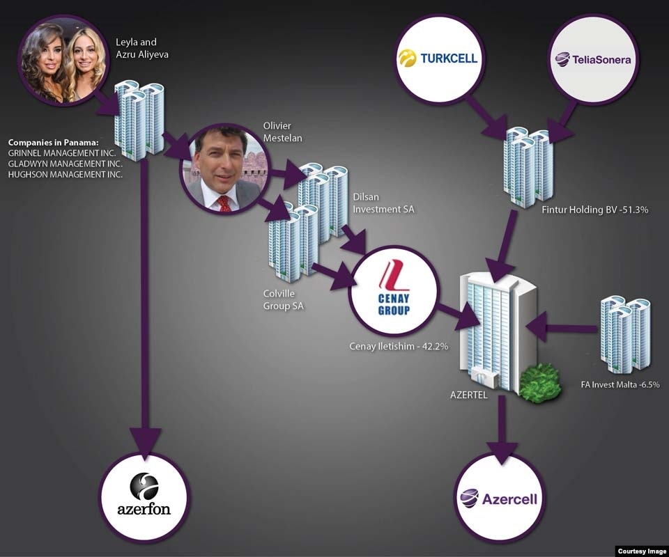 Sənədlərə görə prezident İlham Əliyevin qızları ilə ölkənin ən böyük mobil rabitə operatoru Azərcell-i bir-birinə bağlayan mürəkkəb ofşor şirkətlər sxemi var.