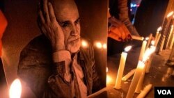 Təbrizdə vətəndaşlar 86 yaşında Kanadanın Toronto şəhərində dünyasını dəyişən təbrizli şair və yazar Rza Bərahəninin xatirəsinə Ərk qalasında şamlar yandırıb, şəkillərini qaldırıb.
