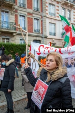 Paytaxt Parisdən yürüşə qatılmaq üçün gələn Arya İran xalqının səsinin eşitdirilməsi üçün burada olduğunu bildirib.
