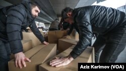 Könüllülər Türkiyə və Suriyada baş verən zəlzələlər nəticəsində evlərindən məhrum olmuş insanlara göndərmək üçün əşyalar toplayır.