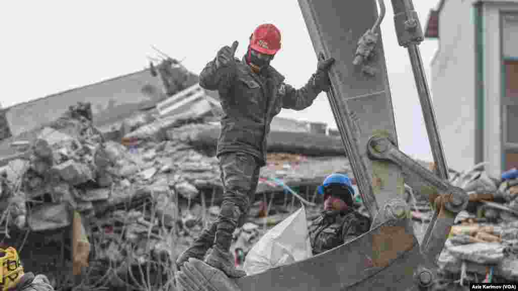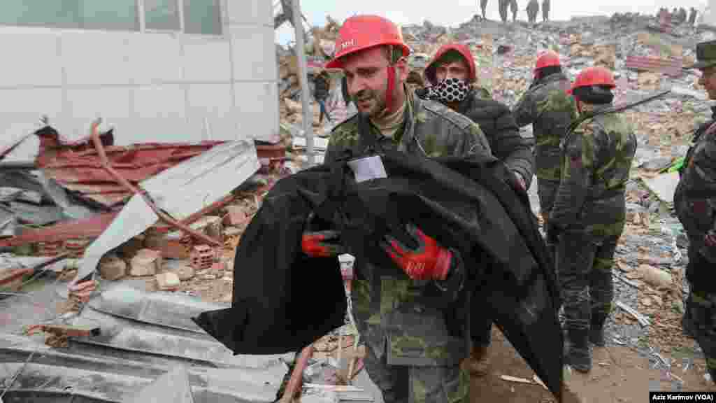Azərbaycan xilasediciləri Türkiyənin Kahramanmaraş şəhərində dağıntılar altında qalmış cəsədləri çıxararkən