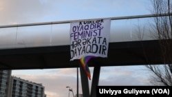 Martın 7-də LGBTQI+ fəalları Bakının “Mərkəzi Park” ərazisindəki körpüdən “Kuirlər oyaqdır, feministlərə dayaqdır” şüarlı banner asıblar.