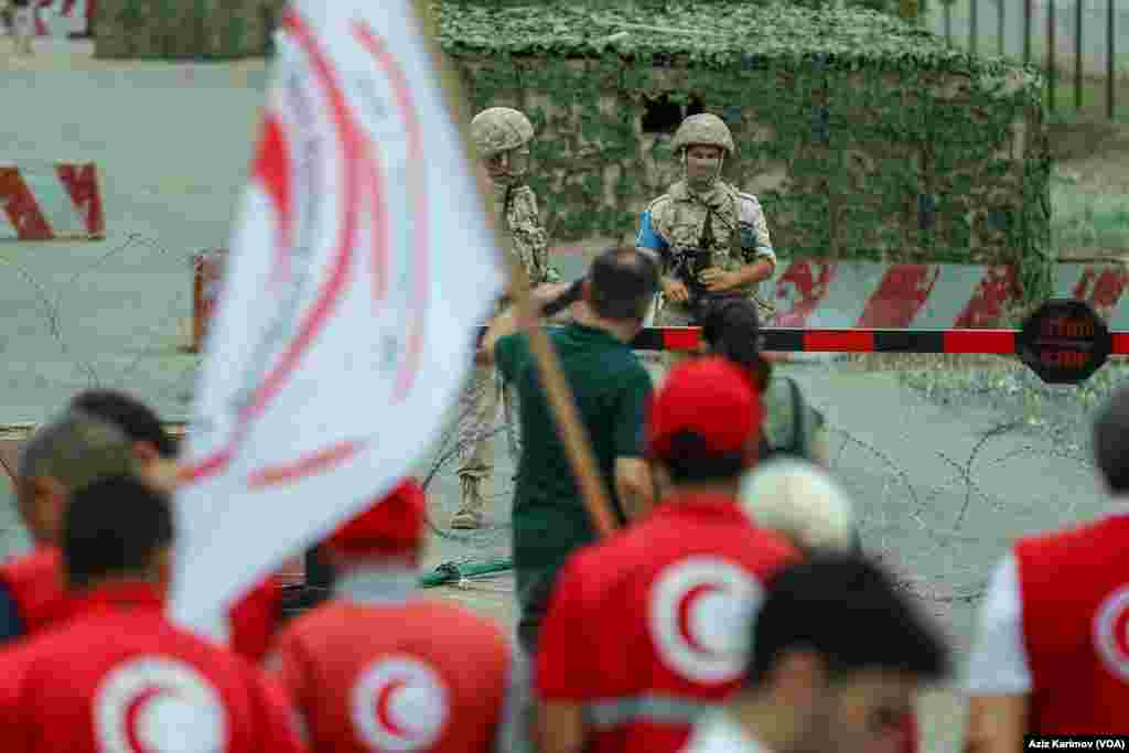 Azərbaycan Qızıl Aypara Cəmiyyətinin humanitar yardım daşıyan maşınları Rusiya sülhməramlıların postu qarşısında