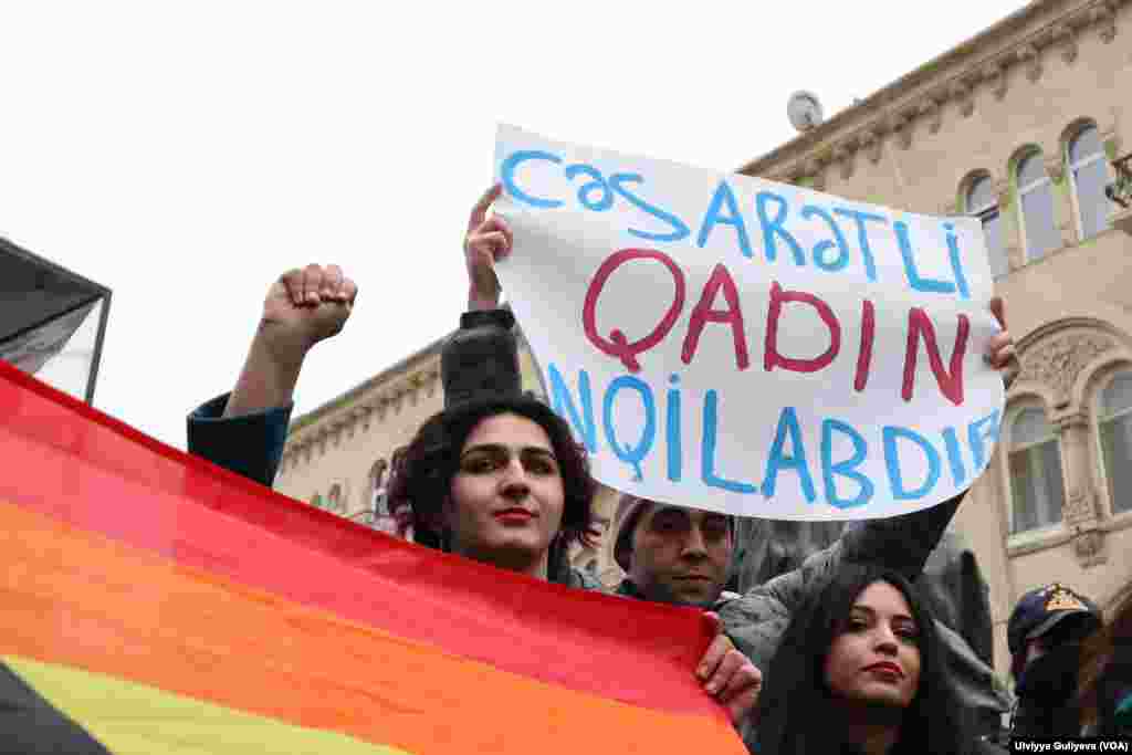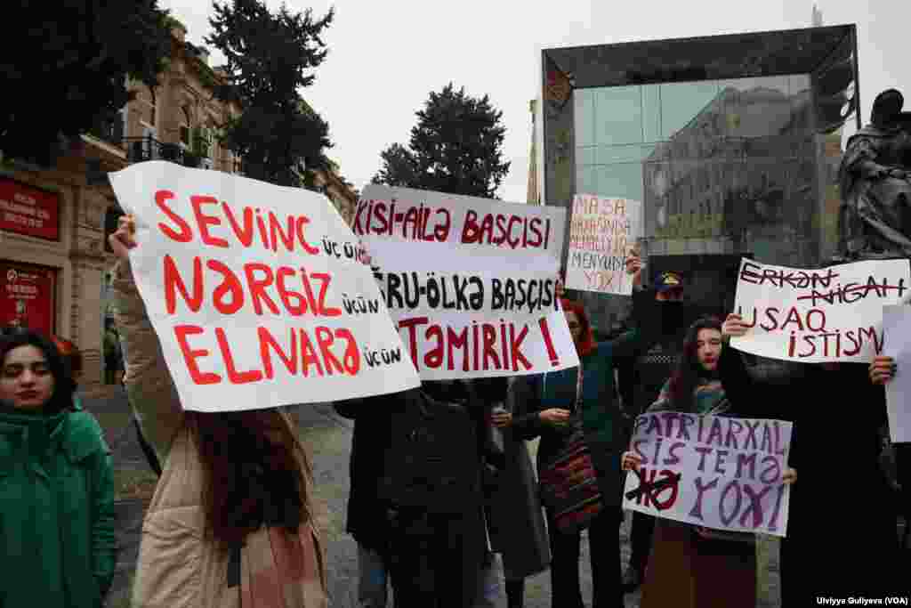 Qadın haqları fəallar iqlim dəyişikliyinə, ədalətsiz əmək haqqına, erkən nikahlara, məişət zorakılığına, LGBTQİ+ların pozulan hüqualarına, qarşılaşdıqları ayrı-seçkiliyə etiraz ediblər. Onlar həbs edilən qadın jurnalistlər – Sevinc Vaqifqızı, Nərgiz Absalamova və Elnarə Qasımovanın, eləcə də həbs olunan digər siyasi məhbus hesab edilən şəxslərə azadlıq tələb ediblər.