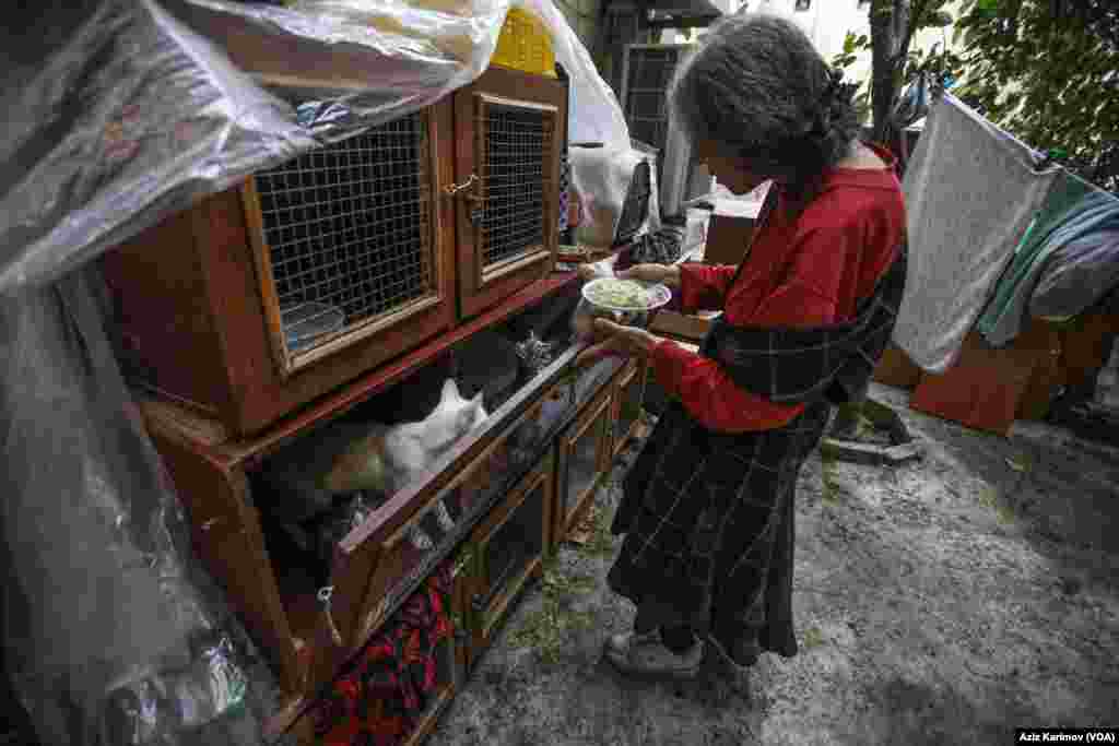 Elmira Ağadiyeva 8 ildir ki, evinin bir hissəsini pişiklər üçün sığınacaq edib. Heç bir yerdən gəliri olmamasına baxmayaraq, qonşuların köməyi ilə pişiklərin qayğısına qalır.