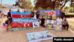 Aksiyada ölkədəki siyasi məhbuslara görə COP29-un boykot edilməsi ilə bağlı şüarlar da səsləndirilib.