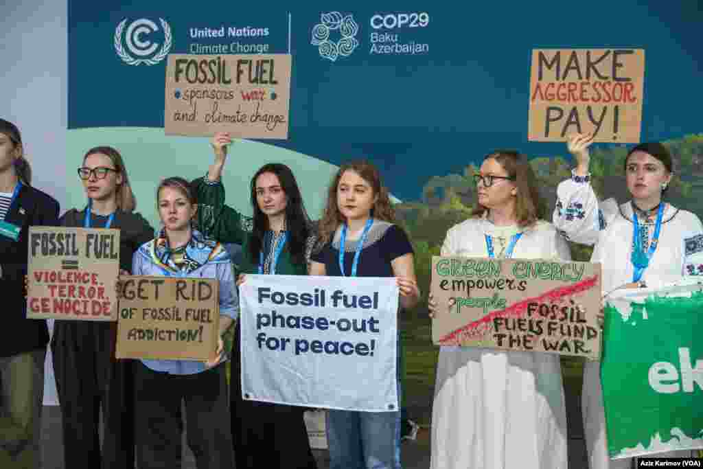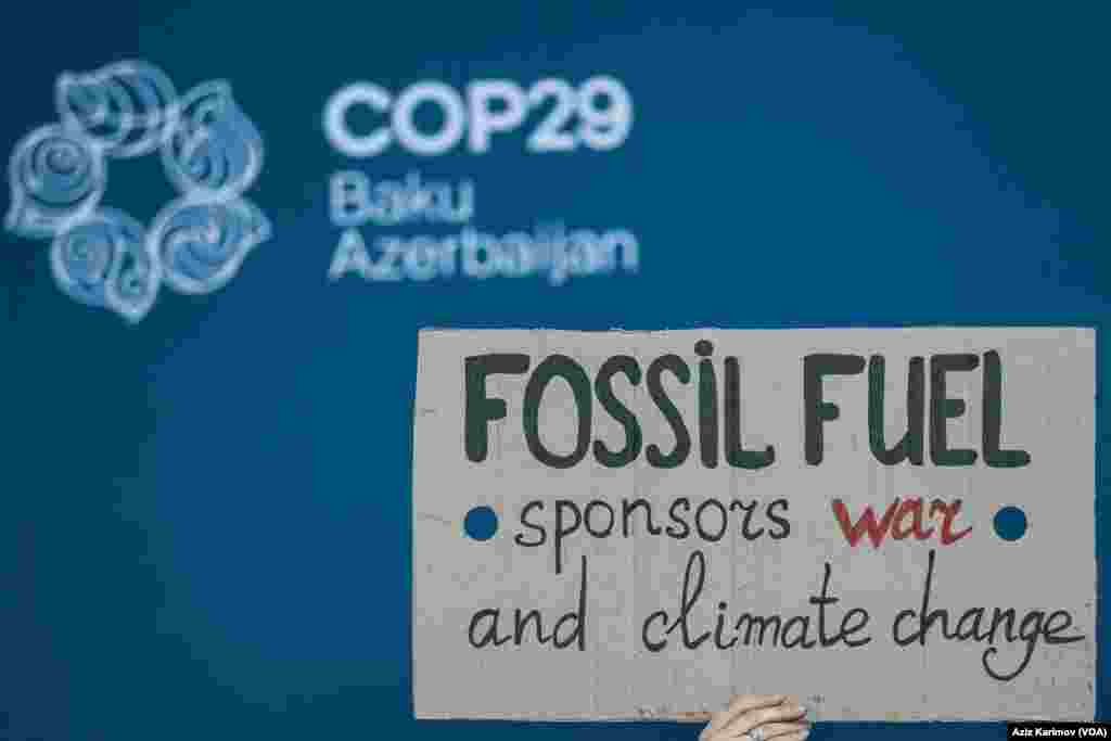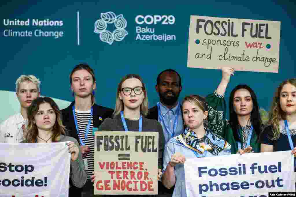 Müxtəlif ölkələrdən fəallar COP29 üçün ayrılmış məkanda bir sıra etiraz aksiyaları keçirib
