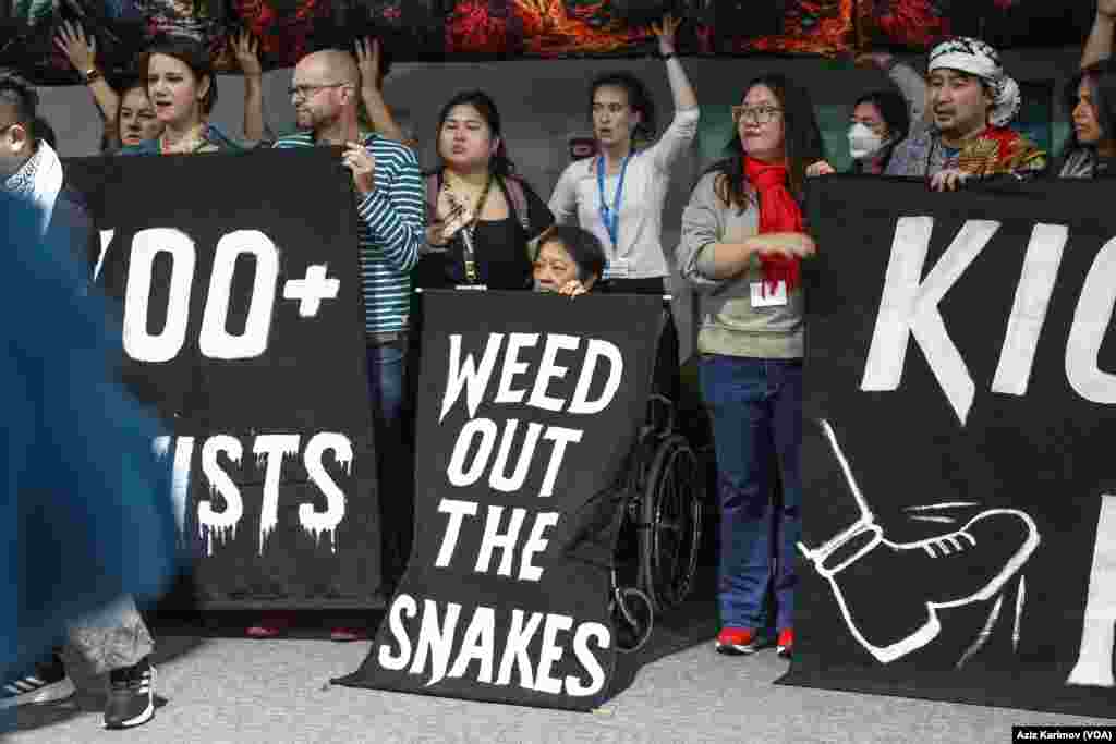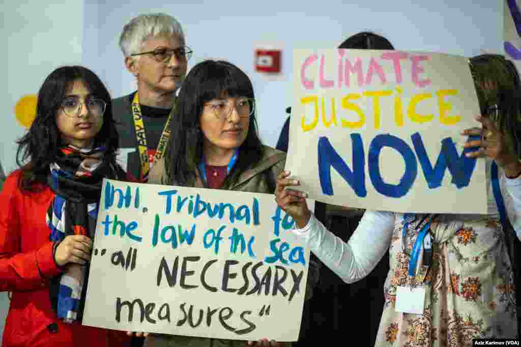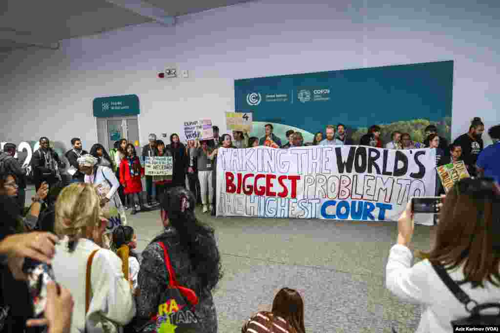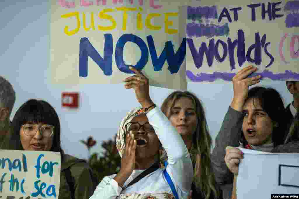 Müxtəlif ölkələrdən fəallar COP29 üçün ayrılmış məkanda bir sıra etiraz aksiyaları keçirib