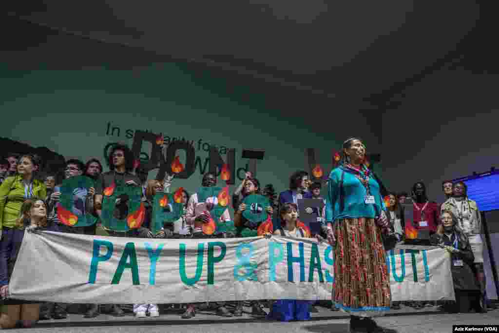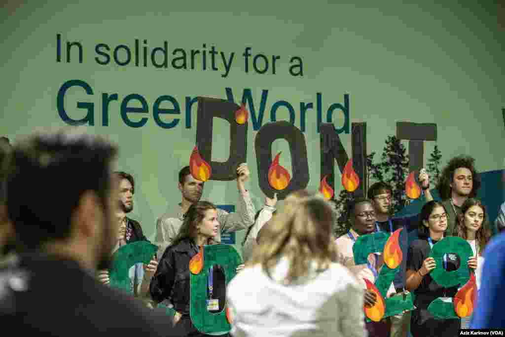 Müxtəlif ölkələrdən fəallar COP29 üçün ayrılmış məkanda bir sıra etiraz aksiyaları keçirib