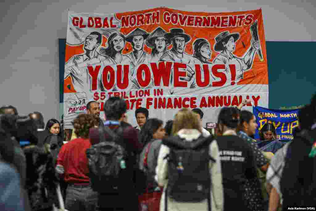 COP29 məkanında fəallar iqlim dəyişməsi ilə bağlı nümayişlərə davam edirlər