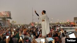 Alaa Salah Xartumda etiraz nümayişləri zamanı, 10 aprel 2019.