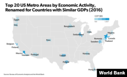 Amerika Sahibkarlıq İnstitutunun eksperti Mark J. Perry Birləşmiş Ştatların iqtisadiyyatı haqda təsəvvür yaratmaq üçün maraqlı metod seçib. O, ABŞ-da əsas şəhərlərin iqtisadiyyatlarını bütöv ölkələrin iqtisadiyyatları ilə müqayisə edib.