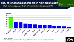 Bir çox başqa qonşuları ilə müqayisədə Sinqapur reallığı həqiqətən möcüzə sayılmalıdır. Ölkənin ixrac etdiyi məhsulların 50 faizdən çoxunu yüksək texnologiyalı istehsalat təşkil edir. Bu göstərici üzrə dünyada birinci yeri tutan Sinqapur ən yaxın rəqabətçiləri olan Koreya, Çin, İrlandiya, ABŞ və Yaponiyanı az qala ikiqat üstələyir.