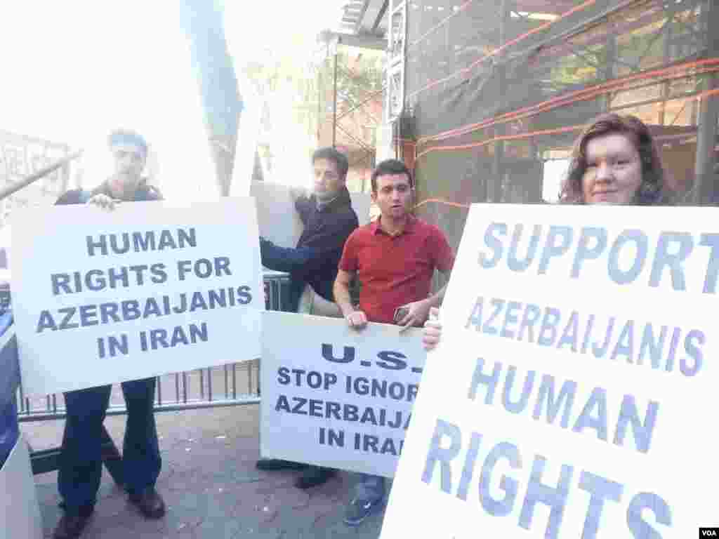 İran azərbaycanlıları prezident Həsən Ruhanini vədlərinə əməl etməyə çağıraraq, BMT qarşısında aksiya keçirib