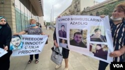 “Biz neçə illərdir Gəncə-Bakı yolunda qalan analarıq. Balalarımız günahsızdır. Bu səbəbdən məhkəmələrdən ədalət, uşaqlarımıza bəraət istəyirik,” aksiya iştirakçılarından biri deyib.