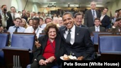 Prezident Obama: “Helen Tomas dərindən inanırdı ki, demokratiya ölkə liderlərini məsul tutmaq üçün onlara çətin suallar verilən zaman işləyir.”