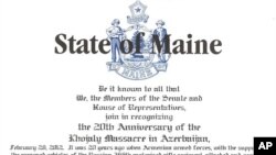 ABŞ-ın şimal-şərqində yerləşən Meyn ştatının Nümayəndələr Palatası martın 13-də Xocalı faciəsinin 20 illiyi ilə əlaqədar sənəd qəbul edib.