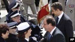Zəfər Tağı qarşısında düzənlənən xatirə mərasimində yenicə prezident seçilmiş Fransua Holland cənab Sarkozi ilə bərabər dayanıb.