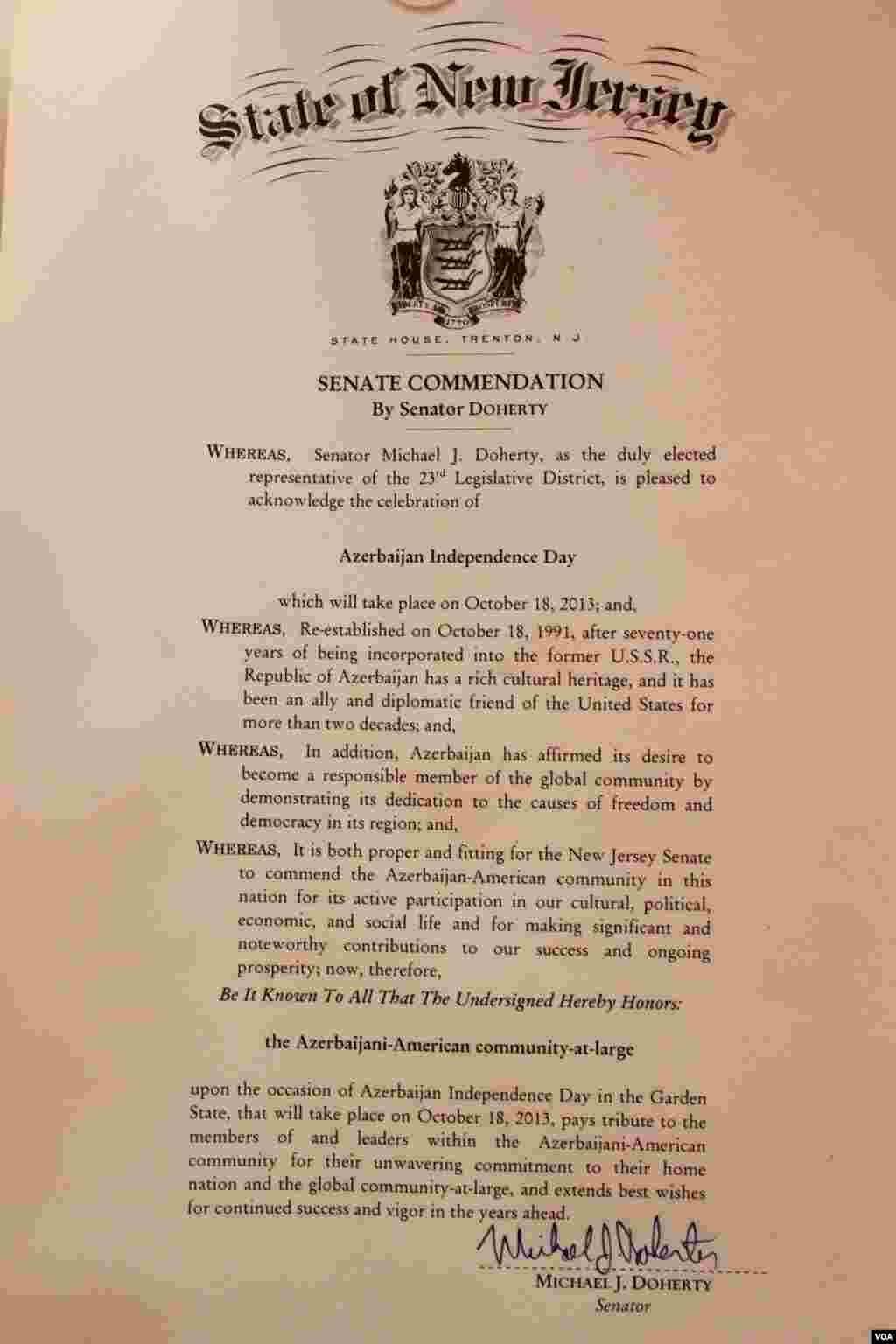 Oktyabrın 18-də Nyu-Yorkda Azərbaycanın Dövlət Müstəqilliyinin 22-cü ildönümü qeyd edilib