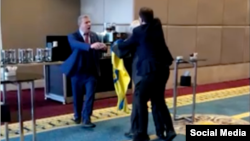 Daha sonra tədbirdən kənarda ukraynalılarla ruslar arasında yeni münaqişə yaranıb. Bununla bağlı videonu Ukraynanın xalq deputatı Oleksandr Marikovski paylaşıb.