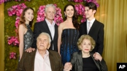 “Wall Street'” filminin ulduzu mərasimdə həyat yoldaşı Katerin Zeta-Cons və onun birinci həyat yoldaşı Diandradan olan 39 yaşlı oğlu Kameron da daxil olmaqla çox sayda ailə üzvü ilə iştirak edirdi və aktyor öz çıxışında bütün yaxınlarına minnətdarlığını bildirib.