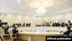 AZƏRTAC agentliyinin məlumatına görə, toplantıda Qazaxıstan prezidenti Nursultan Nazarbayev, Azərbaycan prezidenti İlham Əliyev, Rusiya prezidenti Vladimir Putin, İran prezidenti Həsən Ruhani və Türkmənistan prezidenti Qurbanqulu Berdiməhəmmədov iştirak edib.