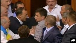 Ukrayna parlamentində müxalif qanunvericilərin dil haqda qanunun müzakirəsi zamanı spikerin podiuma çıxmasına mane olması nəticəsində yaranmış davaya görə Radanın işi pozulub.