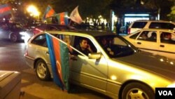 Rəsmi nəticələr açıqlanmamış, artıq hakim Yeni Azərbaycan Partiyası öz namizədi İlham Əliyevin qələbəsini bayram edir. Partiya qərargahı qarşısına toplaşmazdan öncə hakimiyyət tərəfdarları küçələrdə avto-yürüş təşkil ediblər.