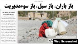 Qəzetin baş səhifəsində həm bir müddət əvvəl Əbhər şəhərində bəzi evlərə xəsarət verən daşqınlara, həm də kritik vəzəiyyətdə olan su qıtlığına diqqət çəkilib. Qəzetdə su rezervləri ilə bağlı vilayətin iflas vəziyyətinə çatdığı qeyd edilib.